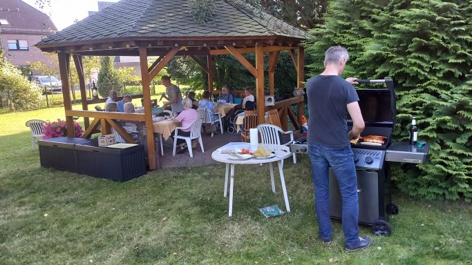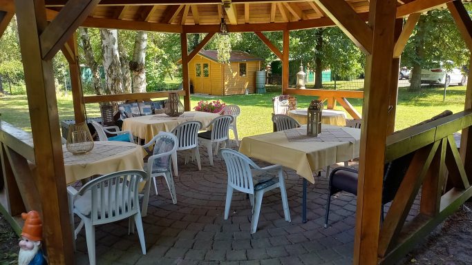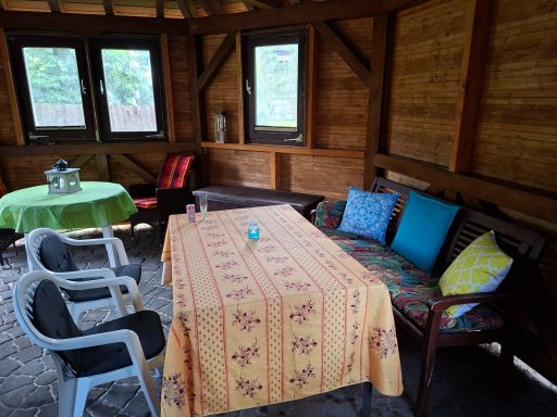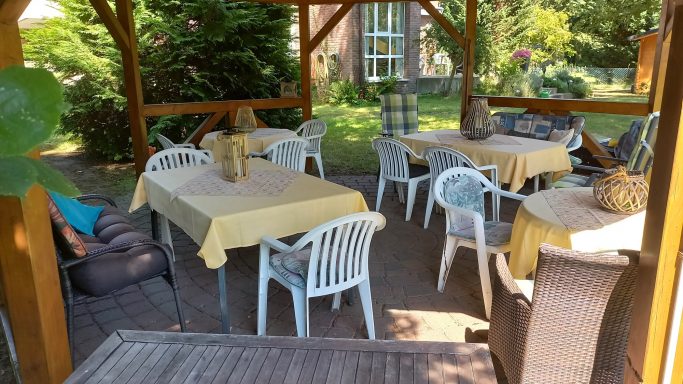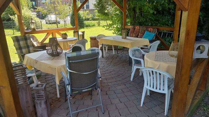 Im Außenbereich stehen Ihnen der große Garten mit gemütlichen Sitzgruppen, liebevoll angelegte Hochbeete und ein schöner Pavillon zur Verfügung.