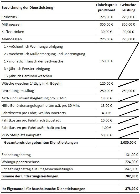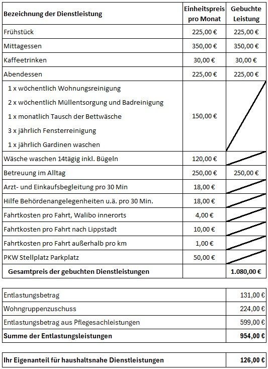 Diese Kalkulation dient zur Orientierung. Sie ist den persönlichen Bedürfnissen anzupassen.